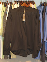 For the traditional guy who frequents a country club or an upscale resort –the Italian made knits (mercerized and pima cotton) collar shirts with woven collars (and the Bobby Jones Player tape)- come in masculine pastels and solid “Carmel” shades of blue and green. (Short sleeve $100-$195, long sleeve $175-$220)