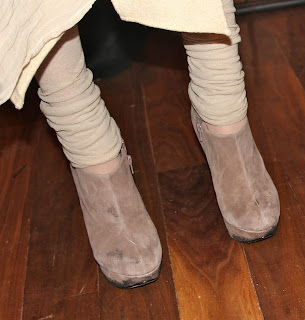 Suede stacked platform pumps/booties