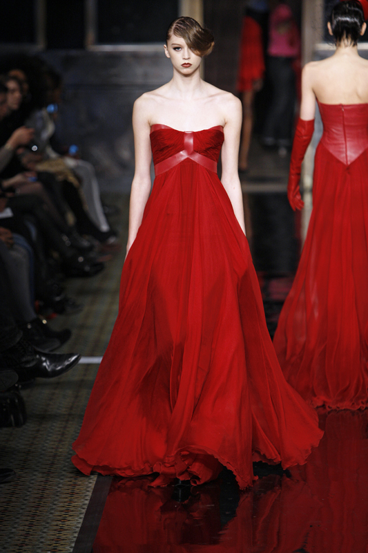 But we have never seen such a sophisticated and stylish pairing of leather appliqué details---on Red Carpet worthy silk chiffon-KNOCK-OUT gowns---as we did here.