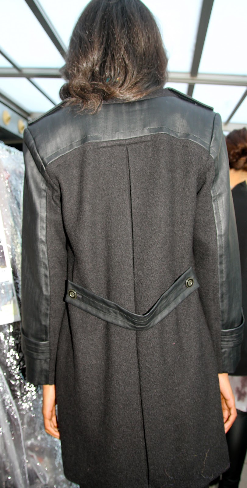 | cocoon shaped wool leather trench overcoat with military details-LOVE |