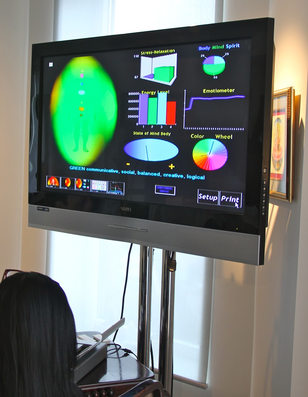 Amidst the modern interior setting -with views that go on and on---there were spiritual items throughout the residence that we figured have special meanings for Rechelbacher---who clearly has voyaged abroad to expand his knowledge on the healing arts. (Background-Rechelbacher is the founder of-now, Estee Lauder owned, Aveda). It all added up to a calm environment---and one we were privileged to be invited to 'experience.'