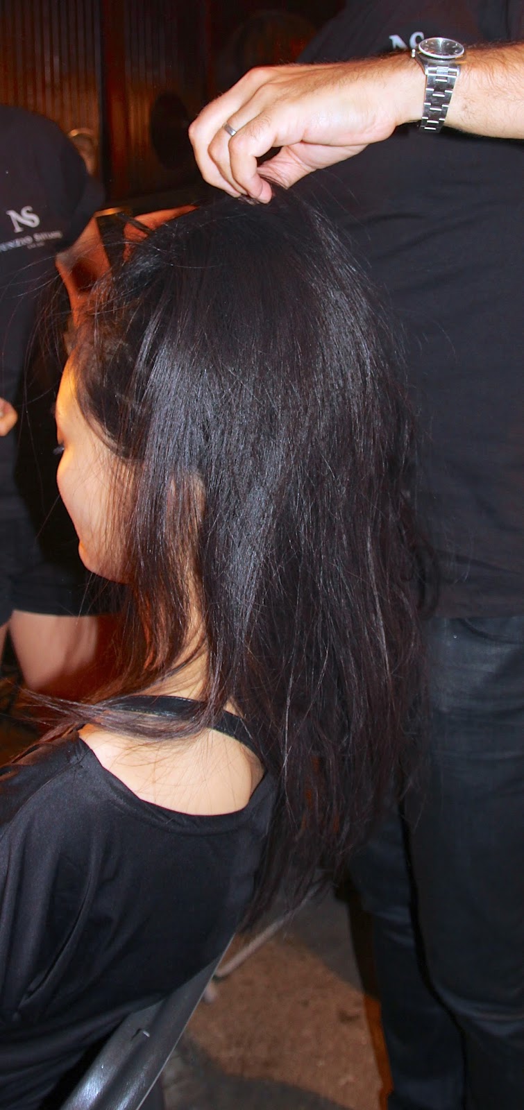 Easy to chit chat with - and just another reason to visit his serene UES salon-Saviano also gives step by step demos---beganning with the observation that long -healthy hair, which this model is blessed with-is actually harder to beehive out- partially explains why all those bleached out 60's dolly-birds from London-had their tresses teased and up (think-Brit singer/song writer icon-Marianne Faithful).