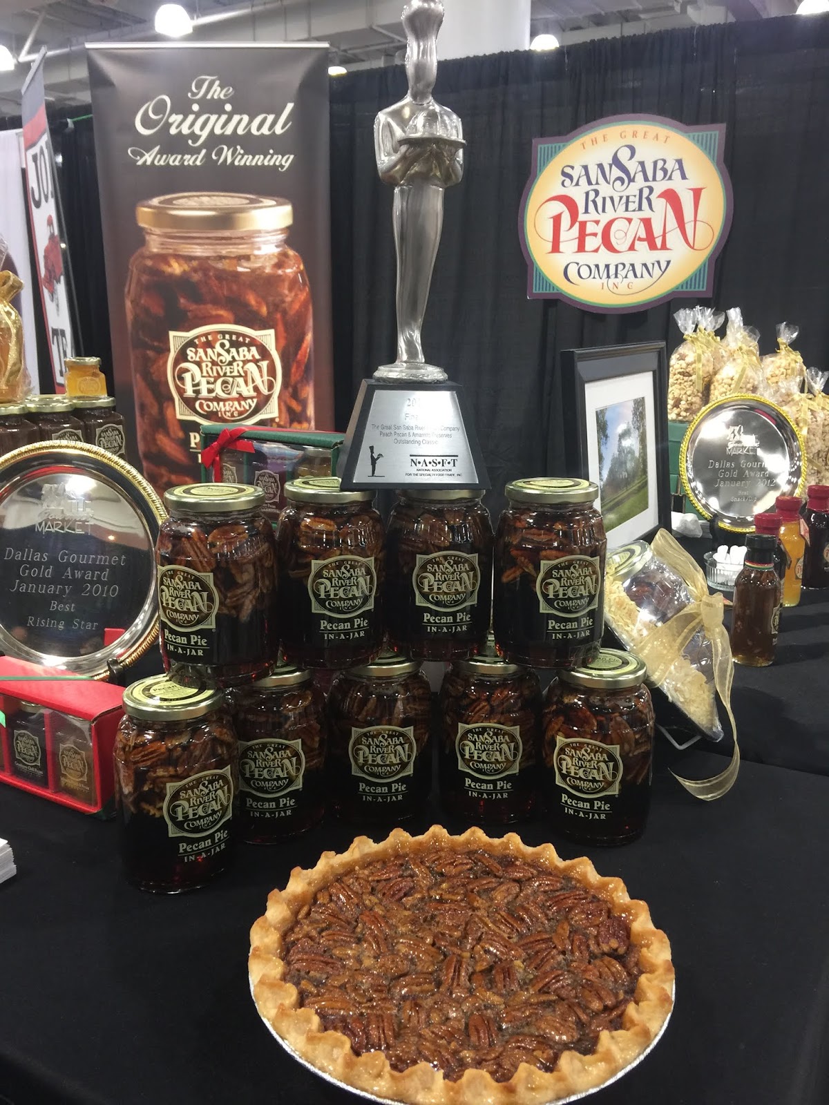 | San Saba TX (Hill country-central part) bills itself as the "pecan capital of the world..." It just might be-and it's home to the San Saba River Pecan Company. PICTuRED: their SOFI Medal Winning Pecan Pie In-A Jar filling...will surely reduce the time/labor part out of making that Thanksgiving meal staple. Available online $14.95---and in a chocolate flavor too. |